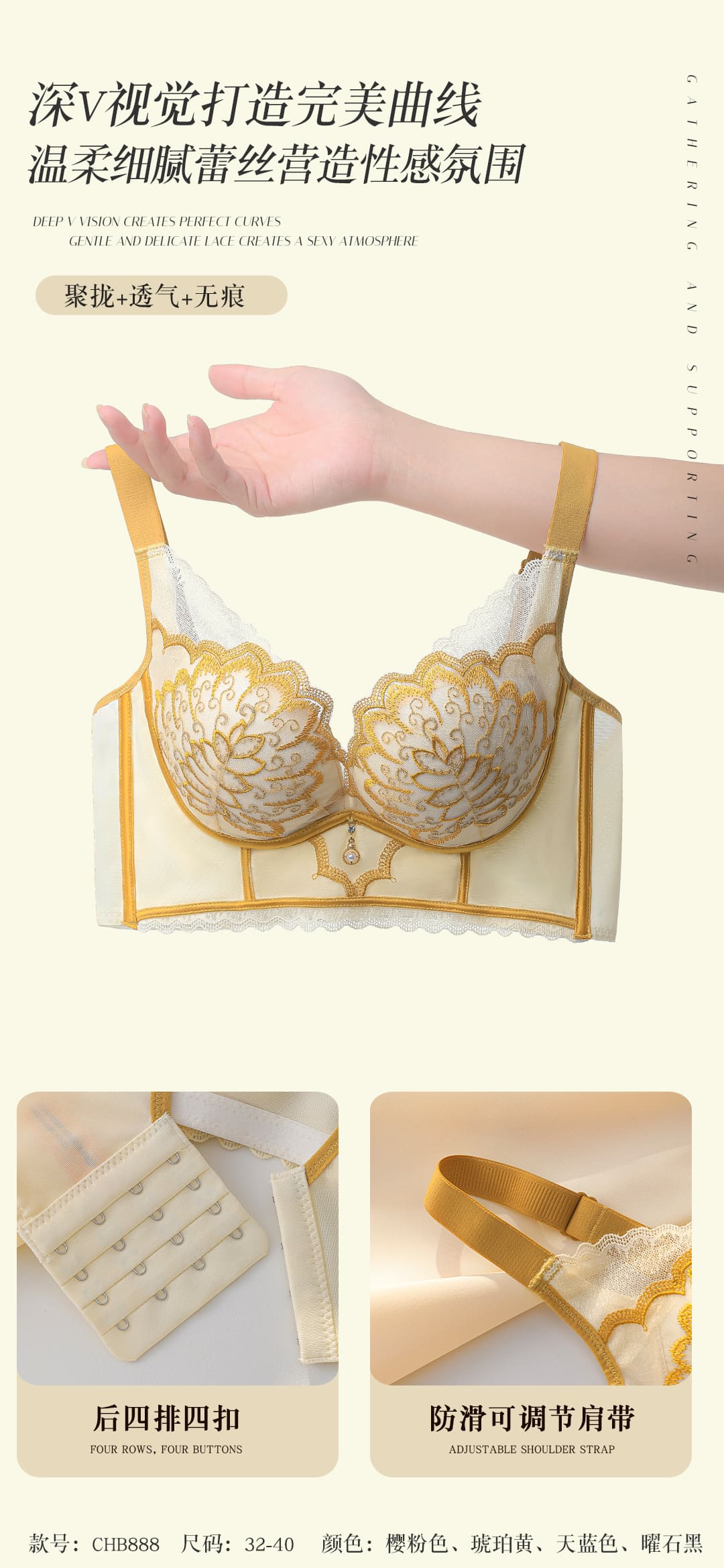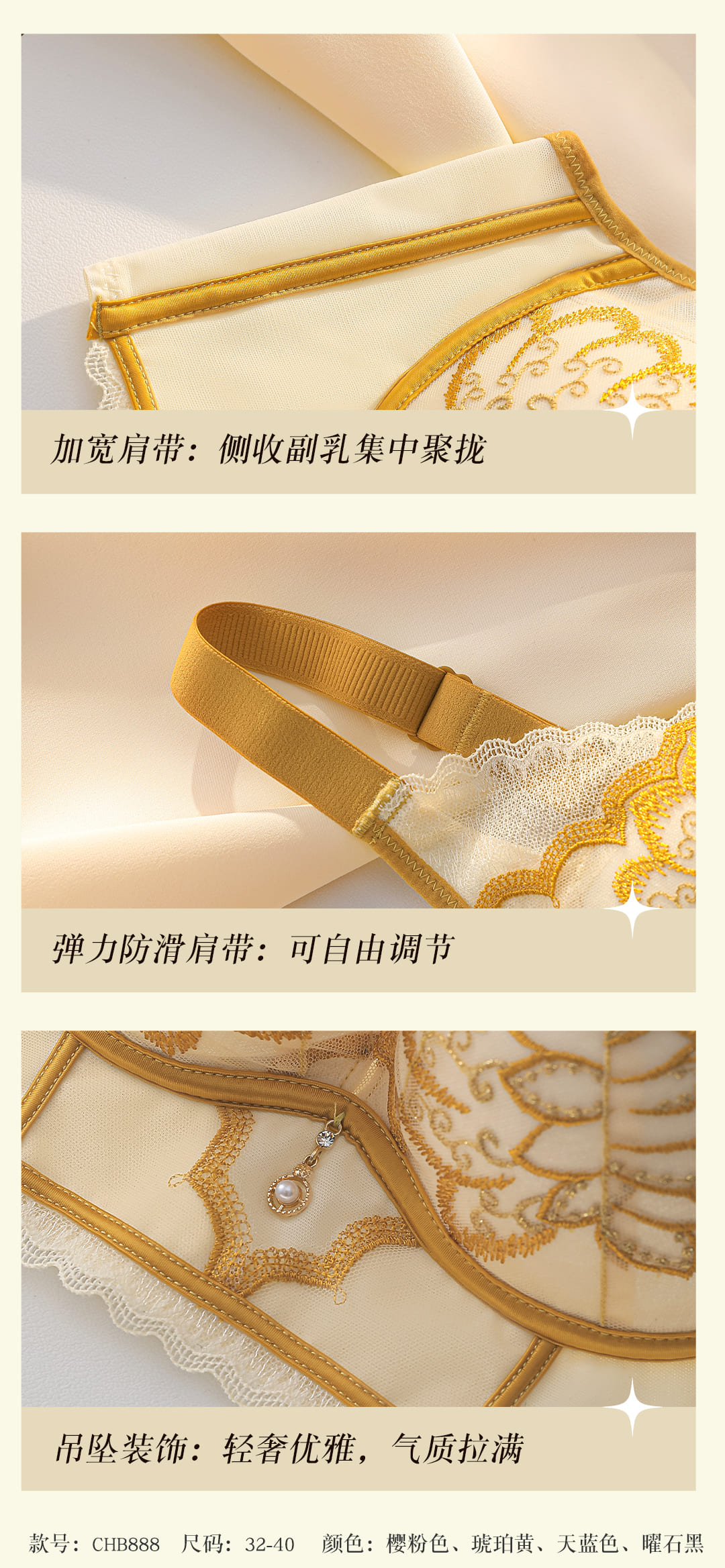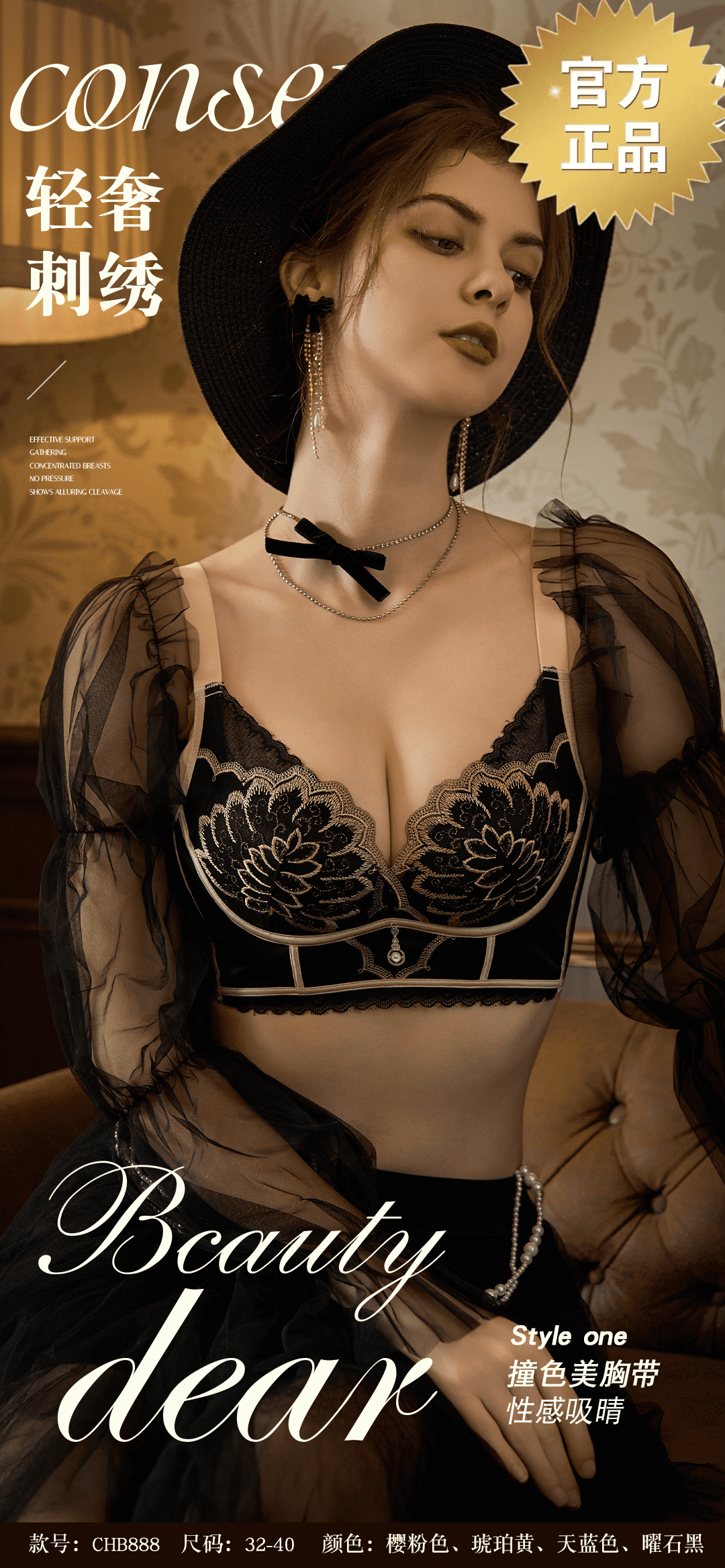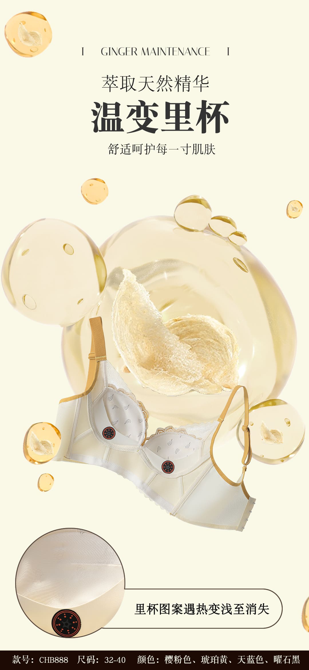 【品名】金仙子 【款号】CHB888 【颜色】樱粉色、琥珀黄、天蓝色、曜石黑 【尺码】32-40 美貌完全在线的刺绣丝覆盖 满满是少女气息高品丝手感巨好完全不扎肉纯欲诱人正当时整个面料是这种立体浮雕感唯美花朵精致立体,超灵动,视觉唯美性感,妥妥拿捏住的轻奢感对内衣的选择绝对的舒适度高于一切面料敲及软糯好像把云朵穿在了身上 🌿 燕窝纤维微磁场美白护肤养塑文胸 燕窝酸促进乳房表皮新陈代谢,让乳房光滑细嫩美白,磁石可刺激穴位,促进人体循环,提升免疫。 外观精致的蕾丝杯面~年轻时尚,修饰胸部比例。内里月牙形承托里布,轻轻一穿就能穿出迷人事业线。 上身聚拢,弹性优良贴身舒适超透气 清爽不闷热,无钢圈设计,稳固承托不勒胸,穿着无束缚。一秒沦陷进它的温柔包容里无法自拔 细腻柔美的刺绣加上精美的色纱点缀防下垂调整胸部曲线更好聚拢胸型塑造迷人美脑尽显青春活力 浪漫法式精致感的内衣长这样~ 不仅性感,舒适度也很OK!虽然是无钢圈款,但承托力是有的,不塌胸型好看又有实力~~ 后比四排四扣弹力肩带提拉上托胸型调节肩带分散肩部压力,舒适无压 小清新又个性的颜色是年轻女生的心头所爱,穿着此内衣集中聚拢上托 加高侧翼选用航空级面料,既舒适透气,还能锁住后背赘肉,还你青春少女身,和副乳肉肉say拜拜。加宽2cm宽肩带,防滑不勒肩;四排四扣随心调节,完美符合人体工程学,给你稳稳安全感。 -colour/樱粉色 -colour/琥珀黄 -colour/天蓝色 -colour/曜石黑